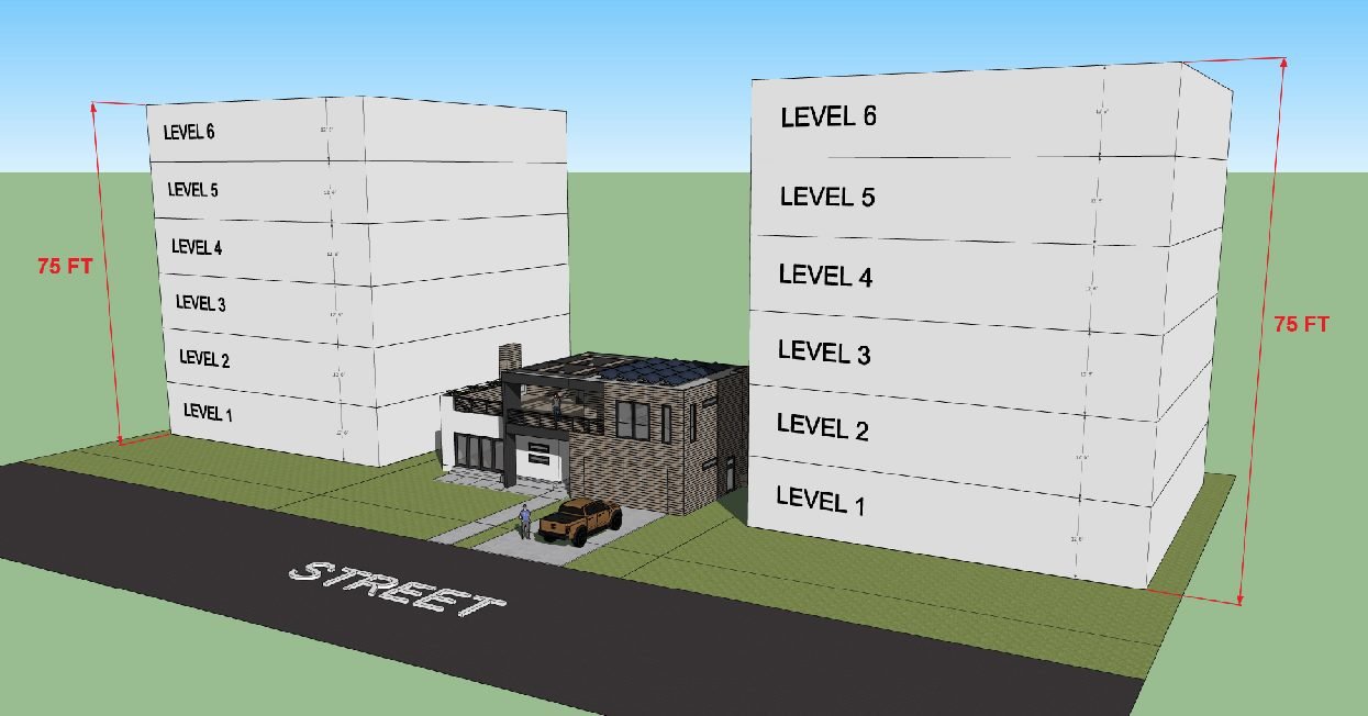 Buildings up to 75 ft. will be allowed on streets near rail stops